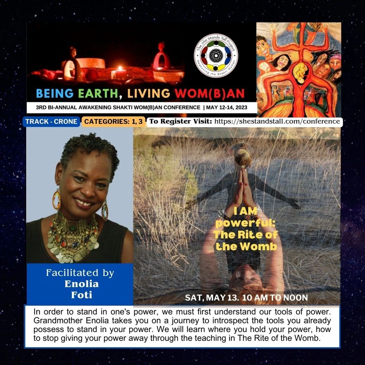 the ocean of elders, queens, and mothers hosting the various learning, and growing spaces at this conference. Each Wom(b)an is weaving, offering, and sharing her time, space, and sacred energy. Sit in Sacred Circle with her. Learn and Grow with her wisdom.