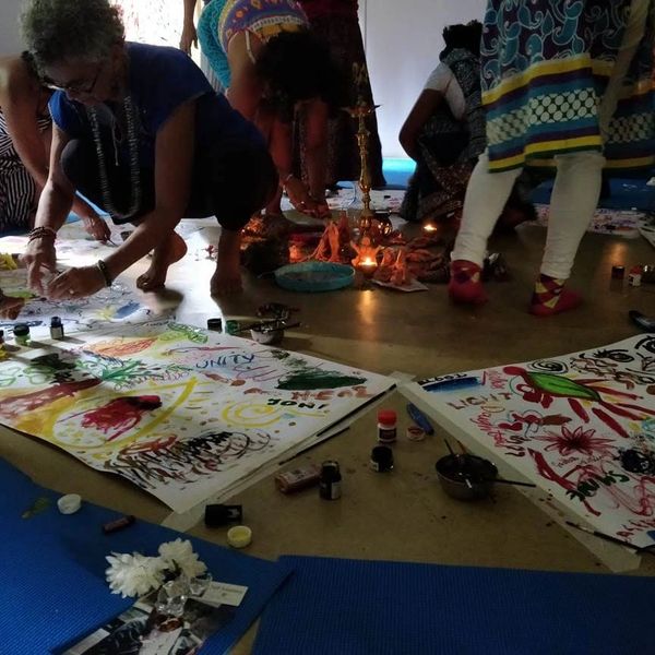 Embodied Creativity Series offers many different explorations that give women the opportunity to locate and create the sacred arts that live within the rhythmic impulse of her body - from creative writing to drumming, from visual arts to embodied movement, ritual making to altar setup, singing to humming, collage making to cooking, weaving to sculpting, divining to healing - as many Wom(b)en there are as many expressions.