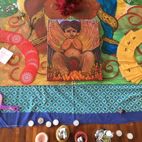 We include an exhaustive body of creative self-expression in isolation and in combination - not limited to visual arts, words & metaphors, collage creating, sculpting, movement, cooking, ritual making, divining, using voice and singing, story-making, chanting, doodling, body mapping, and more. Every wom(b)an has the freedom to explore, engage and inhabit in her creative inkling at her own pace.